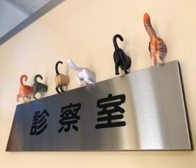 日めくりカレンダーの横に銅のようなもので出来ている、犬と猫の小さな置物と戦隊モノに登場する犬のおもちゃが置いてあります。小さい犬猫の置物はいつもそのままですが、おもちゃの置物はかたちを変えることが出来、小さいお子様と一緒に来院するお母様が獣医師とお話されている時に、お子様のおもちゃとなってくれています☆小さなお子さんがいるので…と来院を考えているお母様方!当院にはそんなおもちゃやぬいぐるみなどありますので、気軽にお子様といらして下さいね!