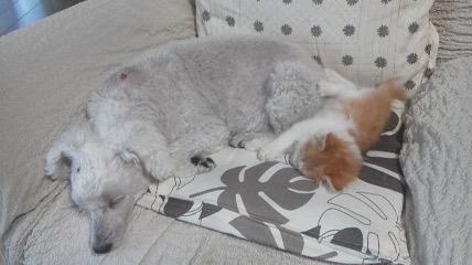 仔猫で拾われて家に来てからずっとタロウにくっつき、眠ったり傍にいたので、初めて一人になり