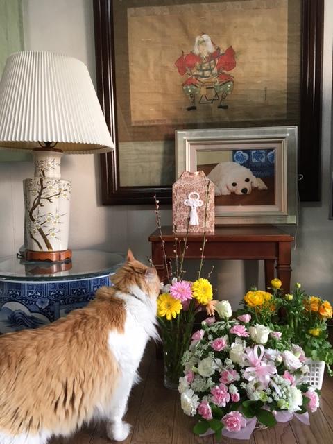 いつもタロウと一緒にいた愛猫のトラ。亡くなったタロウをクンクン嗅ぎ全てを悟ったようでした。