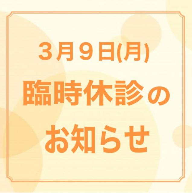 3月9日(月)は誠に勝手ながら休診とさせていただきます。